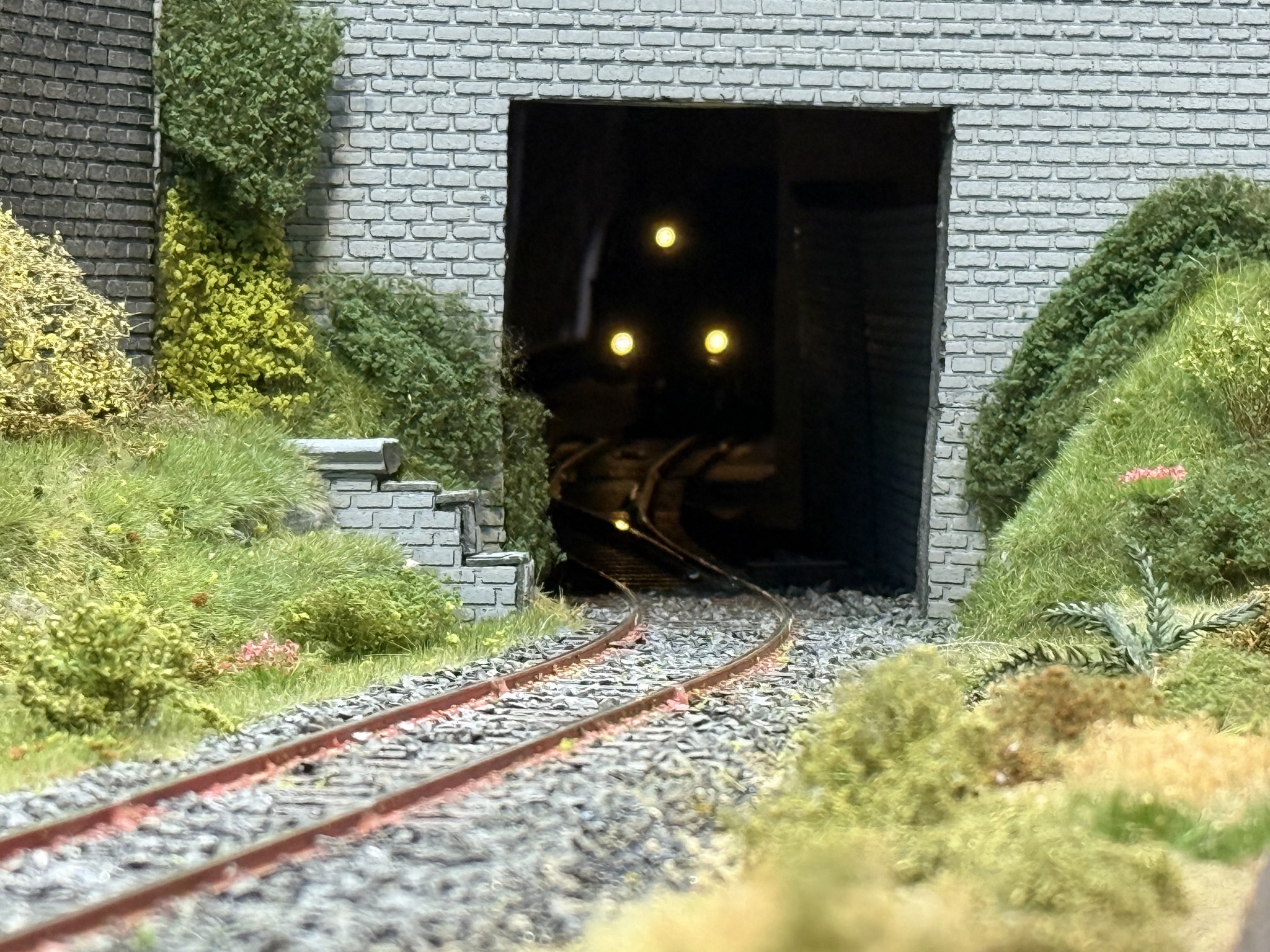 Fast ist Halbzeit, aber wir haben ein Problem. Eine Weiche im Tunnel lässt sich nicht von Hand schalten, es ist bereits ein Servo montiert, gedichtet noch nicht angeschlossen. Das werden wir dann wohl kurzerhand nachholen, um die Abstellgleise im Tunnel auch benutzen zu können. Also geben wir uns an die Montage eines Servodecoders. Das ist sowieso schon lange überfällig und jetzt ist nunmal grade etwas Zeit dafür. Fix angeschraubt, angeschlossen und programmiert, lässt sich die Weiche nun bequem per Handregler steuern und schon können beide Gleise benutzt werden. Nur wie wir die Nummer der Weiche kommunizieren ist noch völlig unklar. Aber auch da fällt uns noch was ein. Hat zumindest bisher immer geklappt.