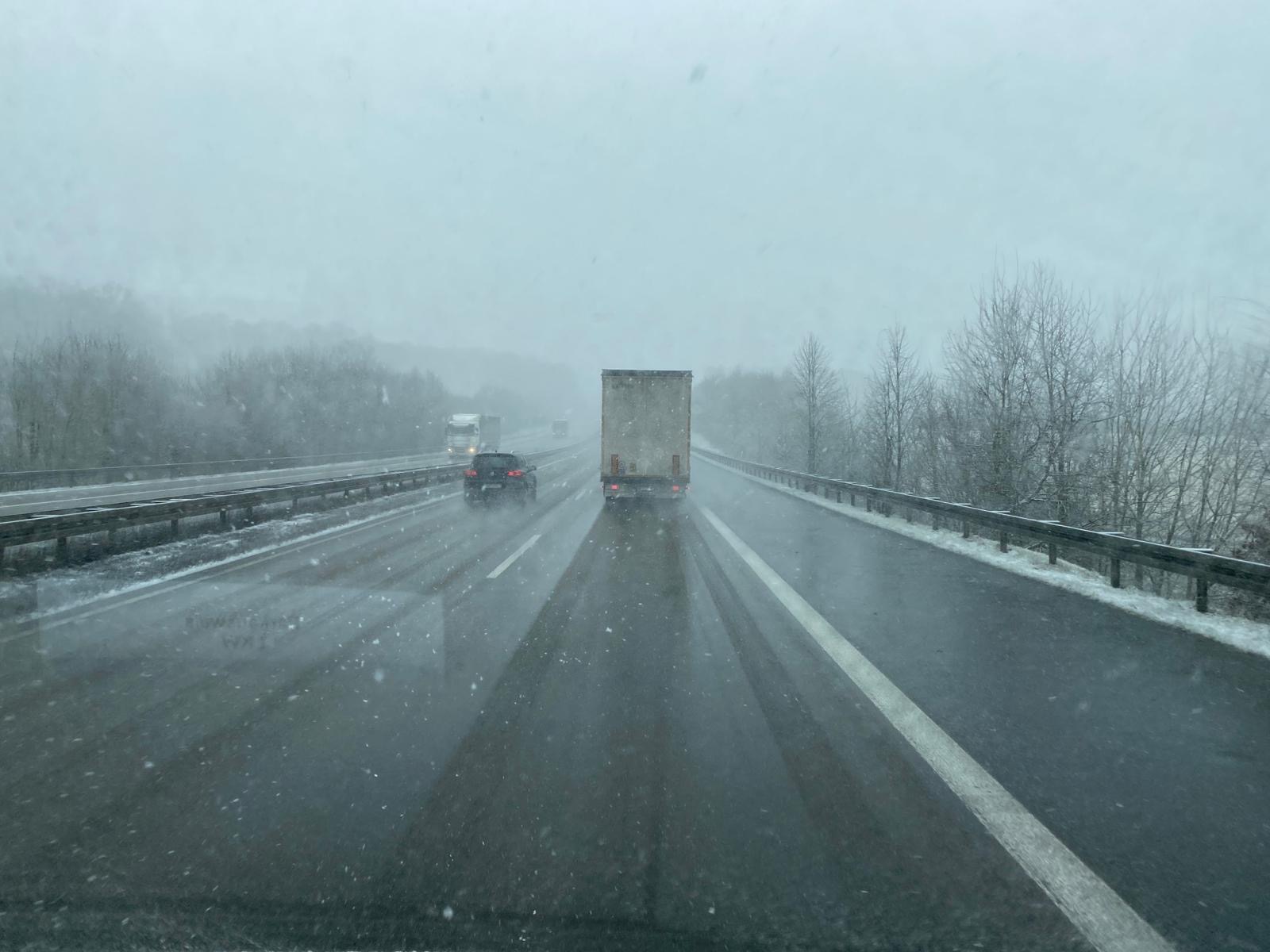 Jetzt liegen etwa 320 km vor uns und der Wetterbericht sieht so aus als wenn wir auf der Fahrt nochmal Schnee sehen werden.