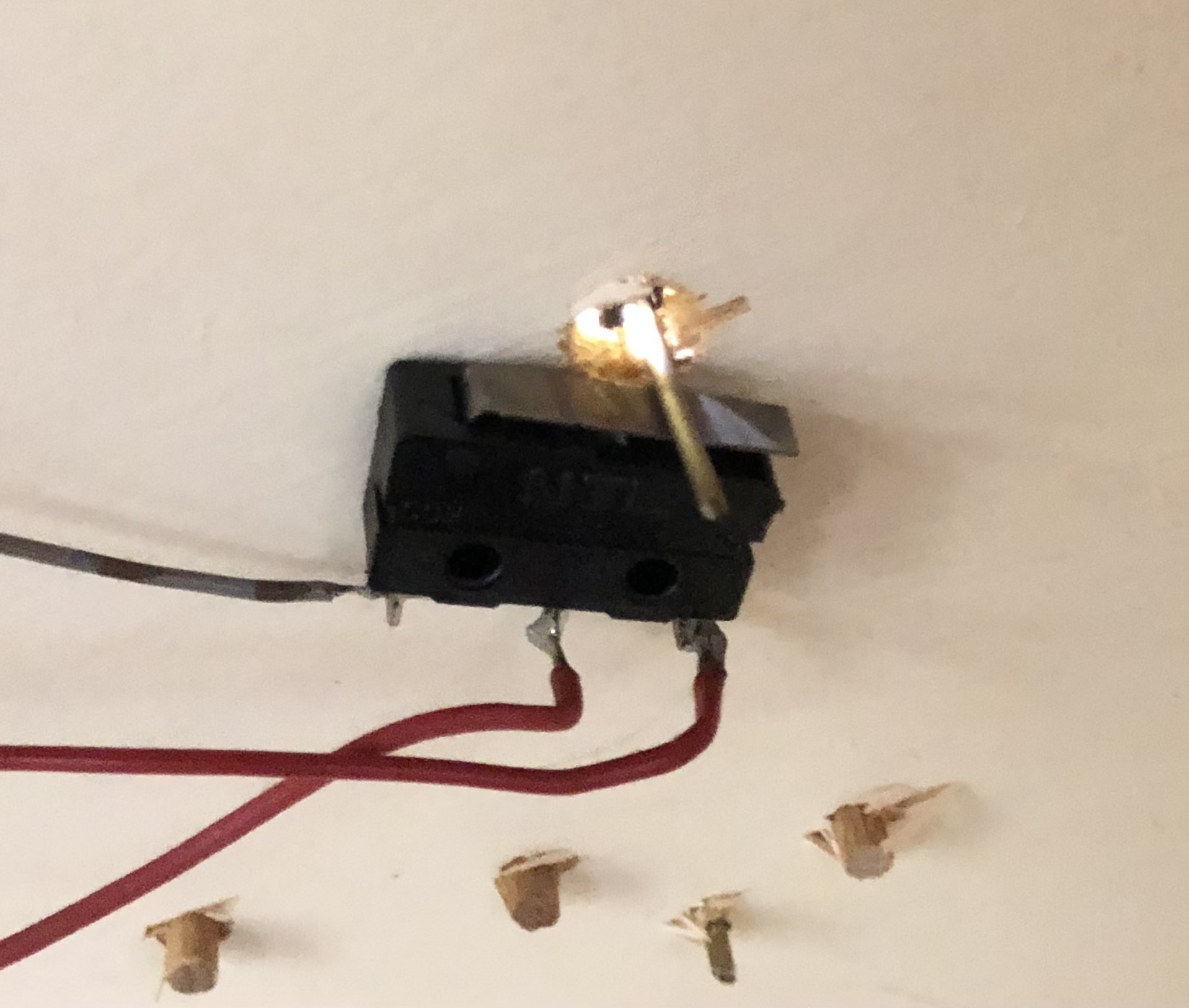 Danach wird der Schalter unter der Anlage befestigt. Dabei ist darauf zu achten, dass die Weiche sich ein einer Endlage befindet. Der Schalter wird nun gegen den Metallstift gedrückt bis ein „Klick“ zu hören ist. Der Schalter kann nun Festgeschraubt werden.